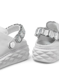 Diamond Maxi Crystal White Nappa Leather Slipper Trainers with Crystal Strap