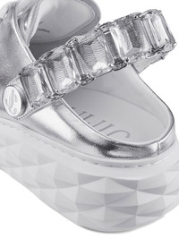 Diamond Sling Silver Metallic Leather Slipper Trainers with Crystal Strap
