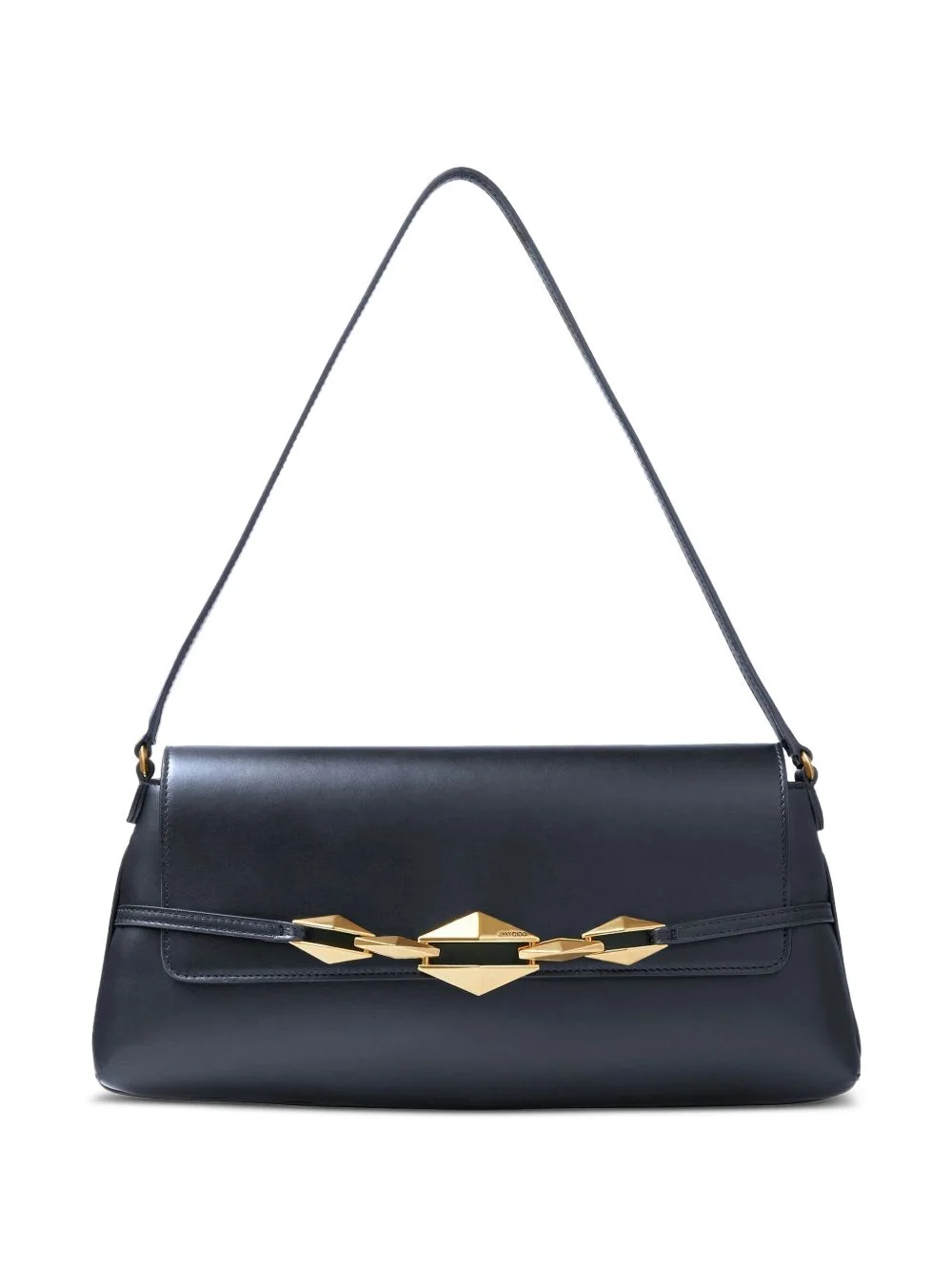 Diamond Shoulder East-West Navy Shiny Calf Leather Shoulder Bag with Diamond Detail