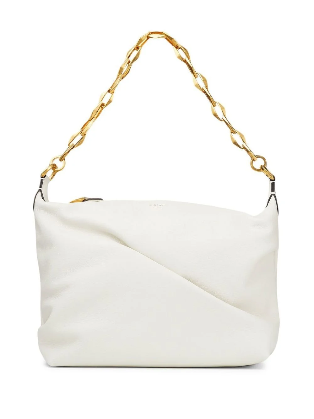 Diamond Soft Hobo shoulder bag white calf leather gold-tone hardware pleat detailing gold-tone logo lettering top zip fastening single chain-link top handle detachable shoulder strap internal slip pocket Made in Italy Composition Outer: Calf Leather 75%, Brass 25% Lining: Polyurethane 51%, Cotton 34%, Polyester 15%
