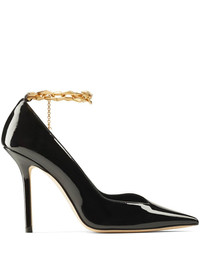 Diamond Talura 100 Black Soft Patent Leather Pumps with Chain