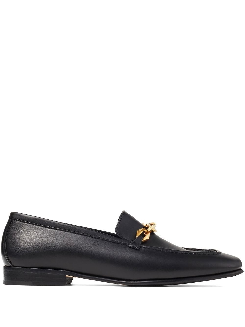 Diamond Tilda Loafer Black Calf Leather Loafers with Chain Embellishment