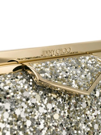Ellipse sequin-embellished clutch Highlights - Fortify your accessory arsenal with this champagne sequinned ellipse clutch from jimmy choo. boasting a sleek design, this compact clutch features a top clasp fastening, gold-tone hardware, an engraved logo, an optional chain strap and an internal logo patch. Made in Italy Composition Lining: Lamb Skin 100% Outer: Sequin 90%, Brass 10% SIZE & FIT Model measurements Height 5 ft 11 in(1.8 m) Bust/Chest 31.49 in(80 cm) Hips 35.82 in(91 cm) Waist 24.8 in(63 cm) Measurement DEPTH 1.18 in(3 cm) HEIGHT 4.72 in(12 cm) STRAP 27.95 in(71 cm) WIDTH 8.66 in(22 cm)