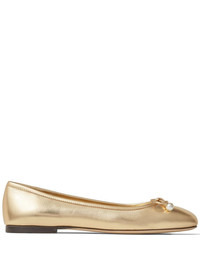 Elme ballerina shoes Defined by a square toe with a crystal-embellished pearly accented bow, these ballerina shoes show why Jimmy Choo is renowned for its sleek Italian craftsmanship. They're crafted from metallic leather and sit atop a flat sole. Highlights - Gold-tone - Leather - Bow detailing - Square toe - Branded insole - Flat sole Made in Italy Composition Sole: Calf Leather 95%, Rubber 5% Lining: Metallic Leather 100% Outer: Metallic Leather 100% SIZE & FIT Measurement HEEL 0.39 in(1 cm)