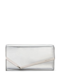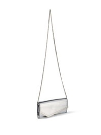 Emmie leather minibag Jimmy Choo crafts the Emmie clutch in Italy from a reflective fabric for a statement mirror-like effect that enhances the accessories' asymmetric envelope silhouette. Highlights - Silver-tone - Leather - Metallic finish - Silver-tone hardware - Engraved logo - Foldover top with magnetic fastening - Detachable chain-link shoulder strap - Internal card slots - Internal logo stamp - Wardrobe icon Made in Italy Composition Outer: Fabric 100%, Metallic Leather 100% Lining: Recycled Polyamide 60%, Polyurethane 40% SIZE & FIT Measurement DEPTH 1.18 in(3 cm) HEIGHT 4.33 in(11 cm) WIDTH 8.66 in(22 cm)