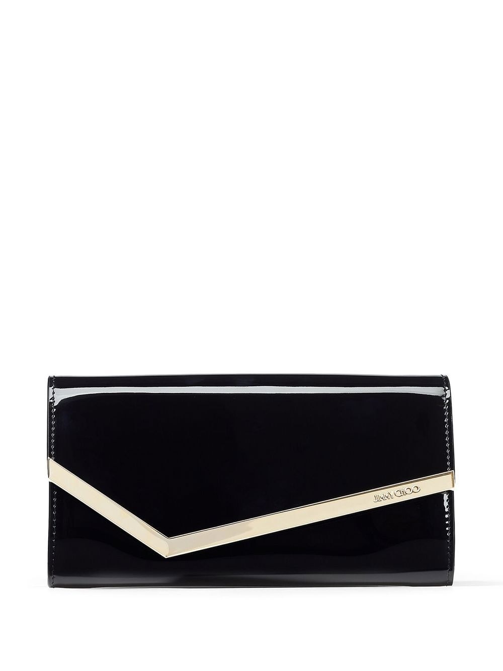 Emmie patent leather clutch bag Highlights - Black - Patent finish - Calf-length - Engraved logo - Brass - Foldover top - Chain-link shoulder strap - Wardrobe icon Made in Italy Composition Outer: Patent Calf Leather 55%, Lambskin 35%, Brass 10% Lining: Polyurethane 50%, Recycled Polyamide 30%, Polyamide 10%, Viscose 10% SIZE & FIT Measurement DEPTH 0.78 in(2 cm) HEIGHT 3.93 in(10 cm) STRAP 23.62 in(60 cm) WIDTH 8.66 in(22 cm)