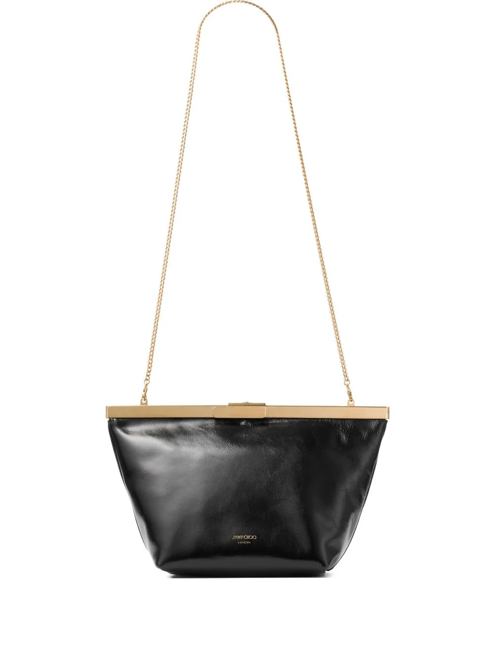 Ganache clutch bag Highlights Made in Italy Composition Lining: Recycled Polyester 100% Outer: Calf Leather 80%, Brass 20% SIZE & FIT Measurement DEPTH 74.8 in(190 cm) HEIGHT 5.7 in(14.5 cm) WIDTH 4.92 in(12.5 cm)