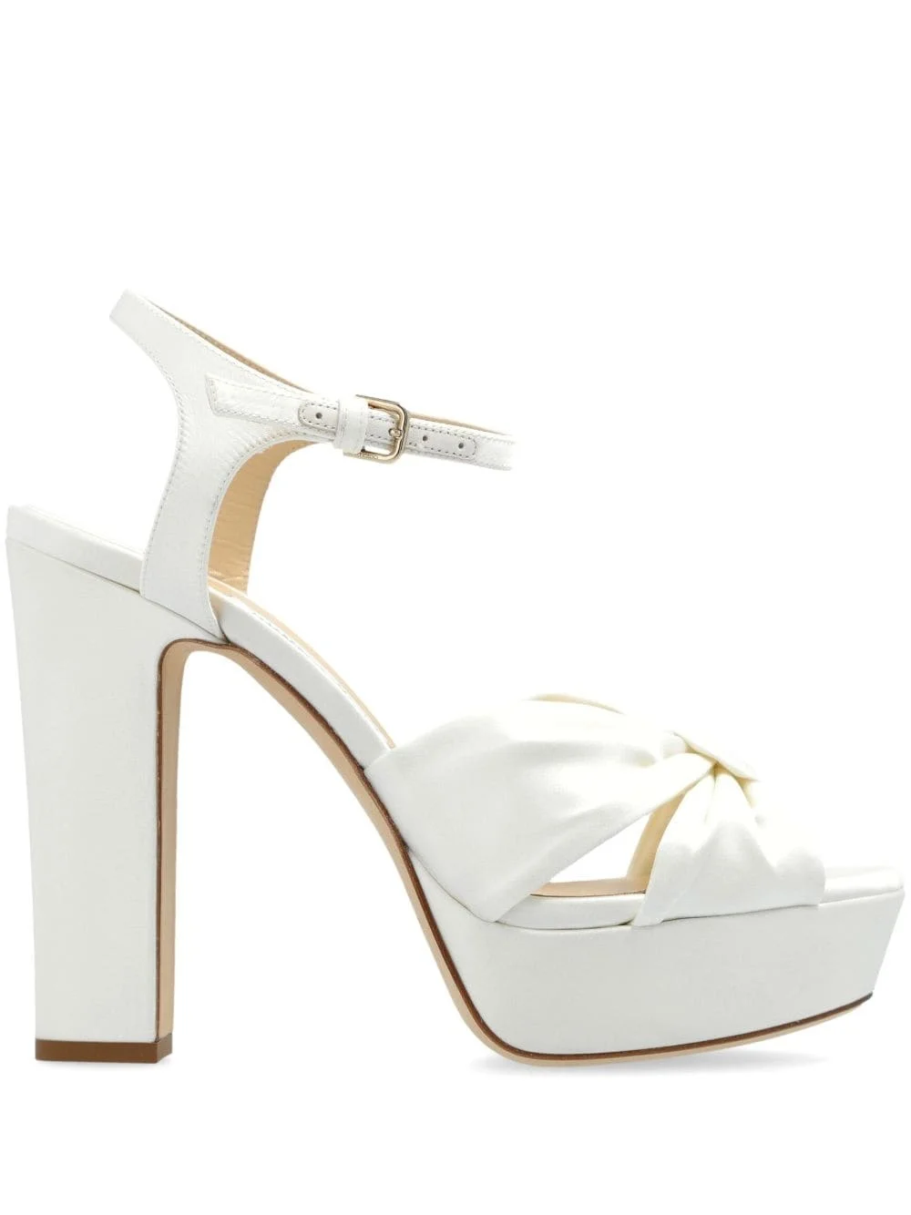 Heloise 120mm sandals Highlights - Ivory white - Satin finish - Peep toe - Knot detailing - Buckle-fastening ankle strap - Branded insole - Platform sole - 120mm block heel Made in Italy Composition Leather 100% SIZE & FIT Measurement HEEL 5.31 in(13.5 cm) PLATFORM 1.57 in(4 cm)