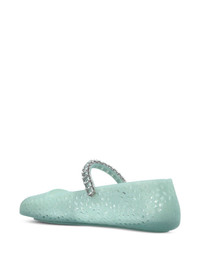 Jelly ballet flats Highlights - Mint green - Pin fastening - Flat rubber sole - Embossed logo to the side - Rhinestone embellishment Imported Composition Lining: Foam 100%, Thermoplastic Polyurethane (TPU) 100% Outer: Thermoplastic Polyurethane (TPU) 100%, Crystal 100% Sole: Thermoplastic Polyurethane (TPU) 100%