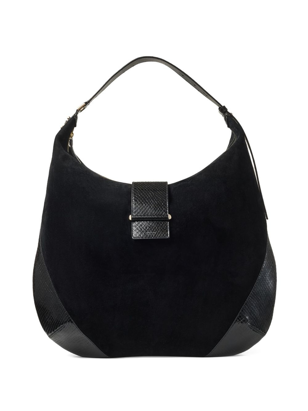 Bar Hobo L Black Suede Shoulder Bag with Shiny Snake Printed Leather Trims