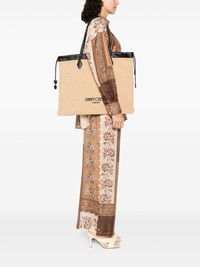 Drawstring Tote L Natural Soft Raffia Tote with Smooth Calf Leather with Jimmy Choo Logo