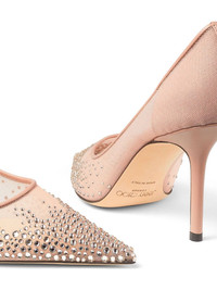 Love 85 Ballet Pink Mesh Pointed-Toe Pumps with Dégradé Crystals