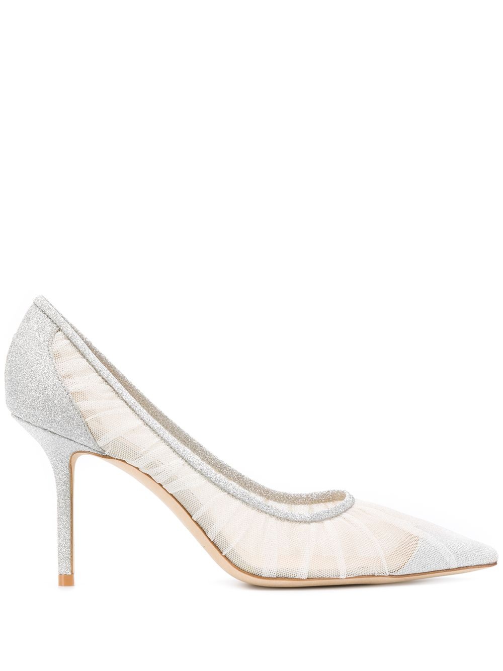 Love 85mm glitter pumps Live through all your Sex and The City desires of chasing after a yellow cab in sky-high stilettos. It also just so happens that these ivory-white leather Love 85mm pointed-toe pumps from Jimmy Choo are comfortable enough to add digits to your step counter. Win win. Featuring a pointed toe, a leather insole, a high stiletto heel, glitter details and a branded insole. Made in Italy Composition Sole: Calf Leather 100% Lining: Polyamide 85%, Goat Skin 5% Outer: Polyamide 100%