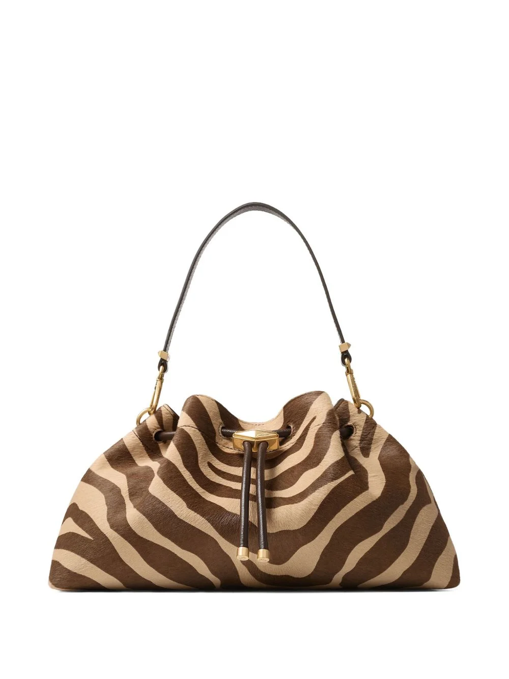 medium Cinch zebra-print shoulder bag Highlights - Beige and brown - Zebra print - Drawstring closure - Top handle - Detachable shoulder strap - Gold-tone hardware - This piece comes complete with a protective dust bag. Made in Italy Composition Calf Leather 60%, Brass 20%, Lamb Skin 20%