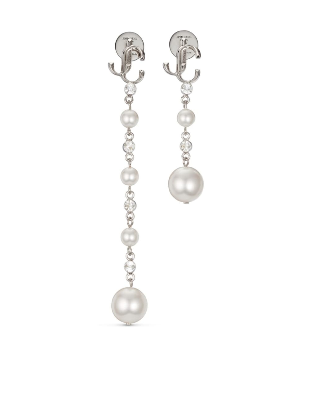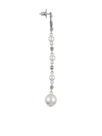 pearl-detail drop earrings Highlights - Silver-tone/chalk white - Crystal embellishment - Logo charm - Asymmetric design - Drop design - Clasp fastening - For pierced ears - These earrings come as a pair. Made in Italy