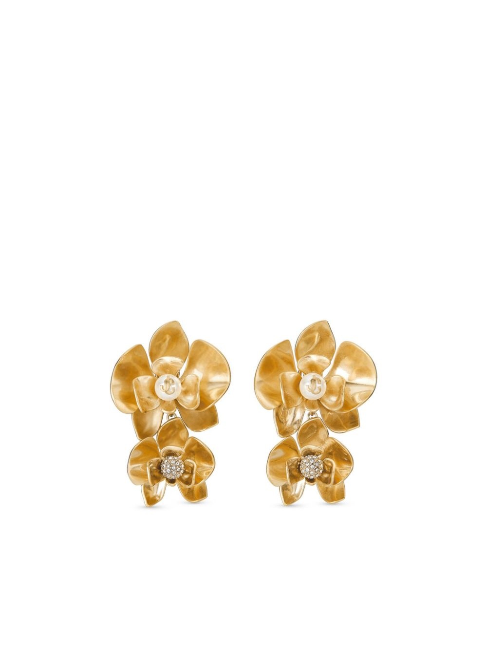 Petal logo-plaque earrings Highlights - Gold-tone - Polished finish - Crystal embellishment - Pearl detail - Gold-tone logo plaque - Faux-flower detailing - Bar-pin fastening - For pierced ears - These earrings come as a pair. Made in Italy