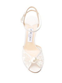 Sacora 85mm pearl-embellished sandals Ivory white lace and leather Sacora 85mm pearl-embellished sandals from Jimmy Choo featuring an open toe, a round toe, an ankle strap with a side buckle fastening, a branded insole and a pearl embellishment. Made in Italy Composition Lining: Calf Leather 100%, Polyester 100% Sole: Calf Leather 100% Outer: Polyester 100% SIZE & FIT Measurement HEEL 3.93 in(10 cm) Inside Sole 10.03 in(25.5 cm) Sole height 0.39 in(1 cm)