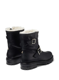 shearling-lined Youth II boots Stay warm in style. A shearling lining means that these Jimmy Choo Youth II boots will cheer up even the coldest of days. They're sure to put a spring in your step. Highlights - Black - Calf leather/shearling - Panelled design - Logo plaque - Round toe - Side buckle fastenings - Ankle-length - Shearling lining - Low block heel - Ridged rubber sole Made in Italy Composition Leather 100%