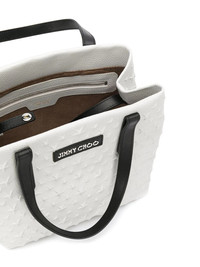 Sofia tote Jimmy Choo are renowned for their luxury leather accessories, infusing elegant silhouettes and timeless styles with an empowered sense of glamour. This Sofia tote is constructed from chalk white leather with tonal star studs and contrasting handles. Featuring round top handles, a front logo patch and star stud detailing. Made in Italy Composition Outer: Calf Leather 100% SIZE & FIT Model measurements Height 5 ft 10 in(1.77 m) Bust/Chest 31.49 in(80 cm) Hips 35.43 in(90 cm) Waist 23.22 in(59 cm)