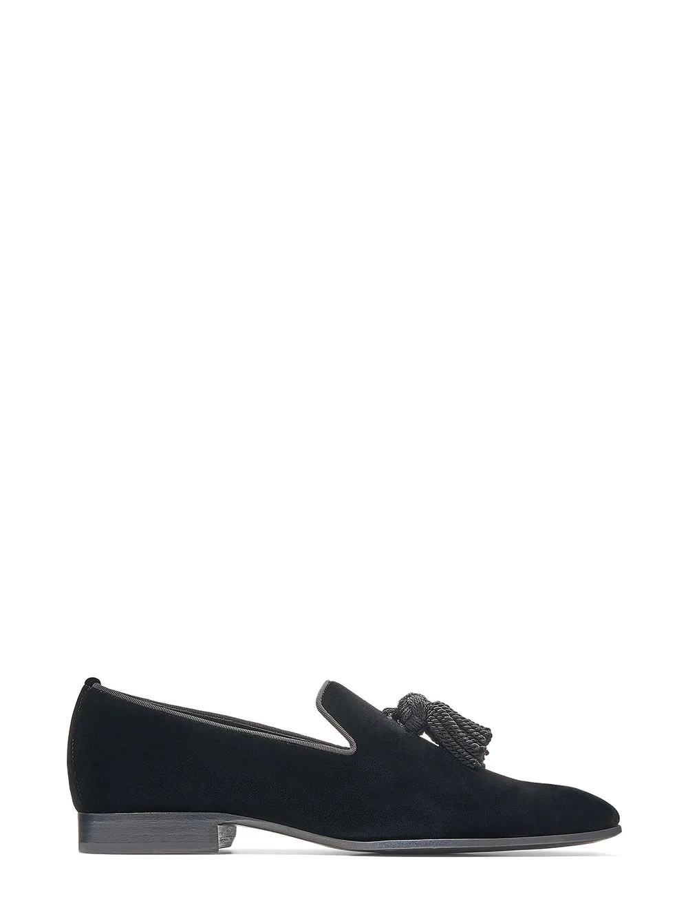 Foxley/M Black Velvet Slip-On Shoes with Tassel