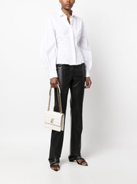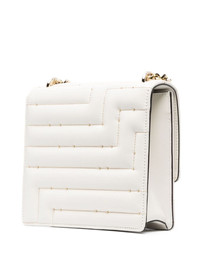 Avenue Quad leather shoulder bag Crafted in Italy, this Avenue shoulder bag from Jimmy Choo is decorated with gold-tone beads along the quilted panels. The leather accessory is finished with the signature JC emblem at the front. Highlights - White - Leather - Gold-tone hardware - Bead detailing - Logo plaque - Quilted - Foldover top with press-stud fastening - Chain-link shoulder strap - Main compartment - Internal slip pocket Made in Italy Composition Outer: SIZE & FIT Model measurements Height 5 ft 11 in(1.8 m) Bust/Chest 31.49 in(80 cm) Hips 36.61 in(93 cm) Waist 24.4 in(62 cm) Measurement DEPTH 1.96 in(5 cm) HEIGHT 6.69 in(17 cm) STRAP 19.68 in(50 cm) WIDTH 7.87 in(20 cm)