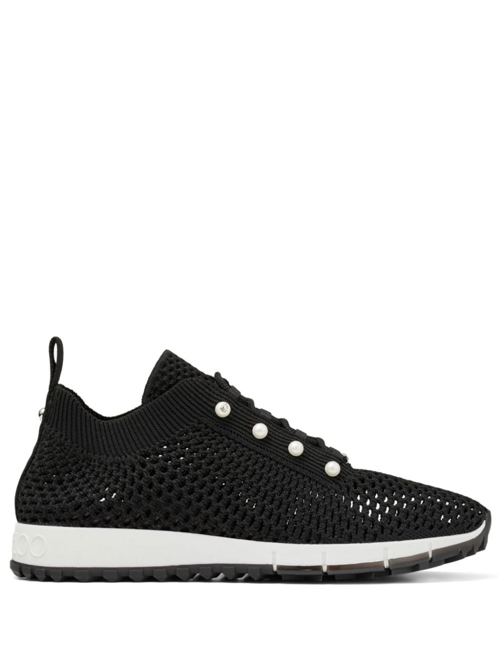 Veles Black Crochet Knit Low-Top Trainers with Pearls