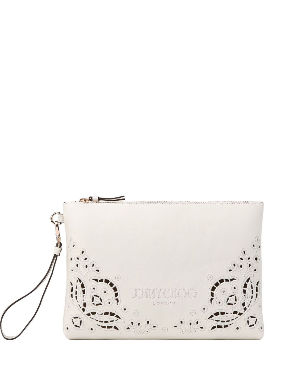 zip flat clutch bag Highlights - White - Top zip fastening - Detachable wrist strap - Debossed logo to the front - Embroidered motif Made in Italy Composition Outer: Calf Leather 92%, Brass 8% SIZE & FIT Measurement DEPTH 1.57 in(4 cm) HEIGHT 6.88 in(17.5 cm) WIDTH 10.03 in(25.5 cm)