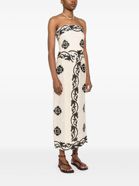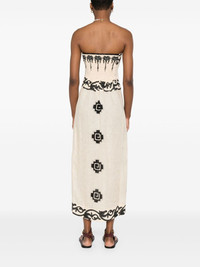 Ancient midi dress Highlights - Light beige - Smocked panel - Strapless - Geometric-pattern print - Straight hem Imported Composition Lining: Viscose 100% Outer: Linen/Flax 100% SIZE & FIT Model measurements Height 5 ft 11 in(1.8 m) Bust/Chest 31.49 in(80 cm) Hips 36.61 in(93 cm) Waist 24.4 in(62 cm) FittingInformation Designed for a slim fit that sits just away from the body offering a close yet comfortable fit The partially elasticated waistband offers increased movement and comfort at the waist Made from a midweight non-stretch fabric