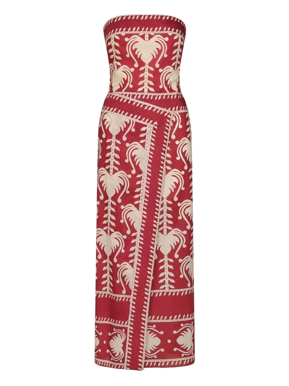 Ancient Peru dress Highlights - Red/beige - Leaf print - Strapless - Side slit - Wrap detail - Cotton poplin Imported Composition Cotton 100% Washing instructions Read Manufacturer Guidelines