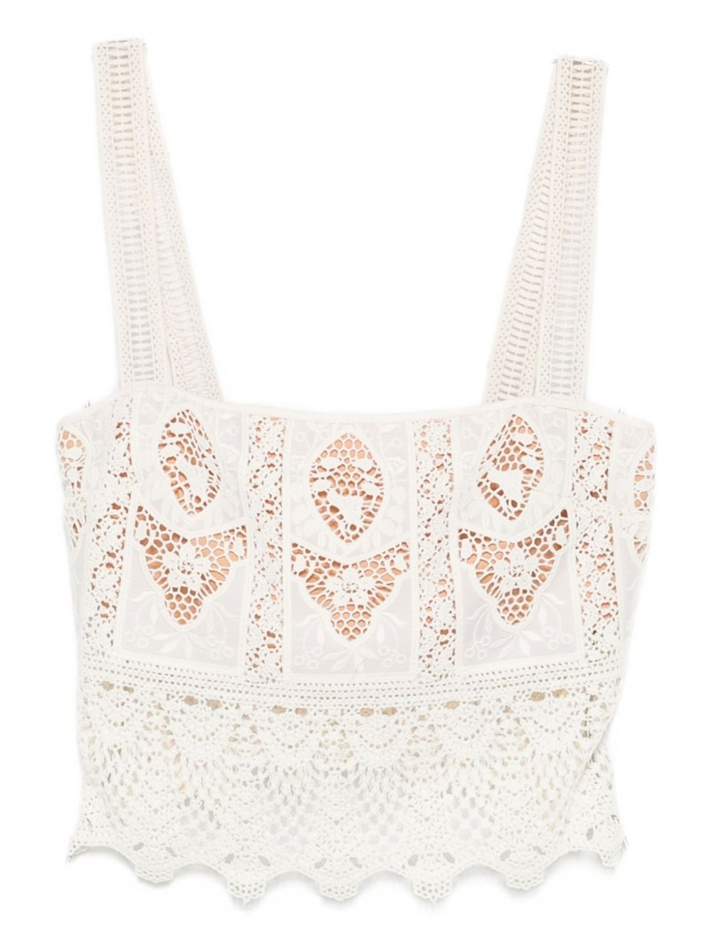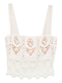 Casablanca cropped top Highlights - Ecru - Scallop edge - Sleeveless Imported Composition Lining: Viscose 100% Outer: Polyester 100% SIZE & FIT Model measurements Height 5 ft 9 in(1.75 m) Bust/Chest 34.64 in(88 cm) Hips 36.61 in(93 cm) Waist 26.37 in(67 cm)