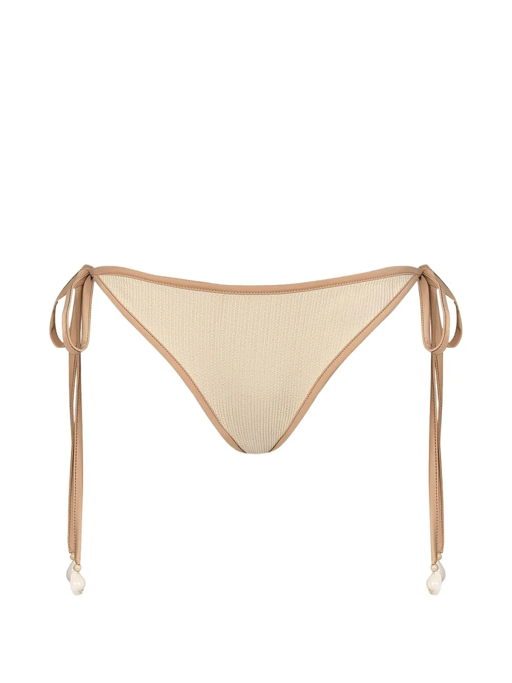 crinkle-tie bikini bottom Highlights - Beige - Tie detail - Beaded accent - Be mindful to try on swimwear over your own garments. Imported Composition Polyamide 88%, Elastane 12% Washing instructions Read Manufacturer Guidelines