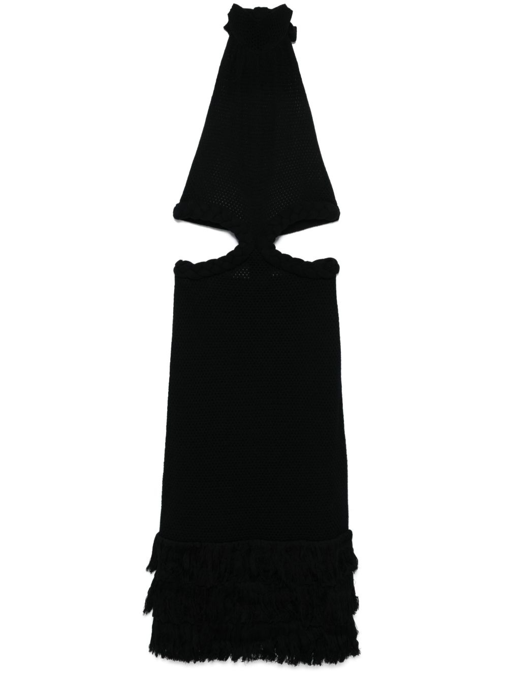 cut-out midi dress Highlights - Black - Rear tie fastening - Halterneck tie fastening - Detachable slip dress - Fringed edge Imported Composition Cotton 100% SIZE & FIT Model measurements Height 5 ft 11 in(1.8 m) Bust/Chest 31.49 in(80 cm) Hips 36.61 in(93 cm) Waist 24.4 in(62 cm) FittingInformation Designed for a slim fit that sits just away from the body offering a close yet comfortable fit The adjustable tie waist gives a more adaptable and personalised fit Made from a midweight non-stretch fabric, this piece offers minimal elasticity when worn