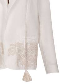 embroidered-tassel jacket Highlights - Beige - Palm-tree embroidery - Tassel detail - Notched lapel - Open front - Long sleeves Imported Composition Linen/Flax 100% Washing instructions Read Manufacturer Guidelines