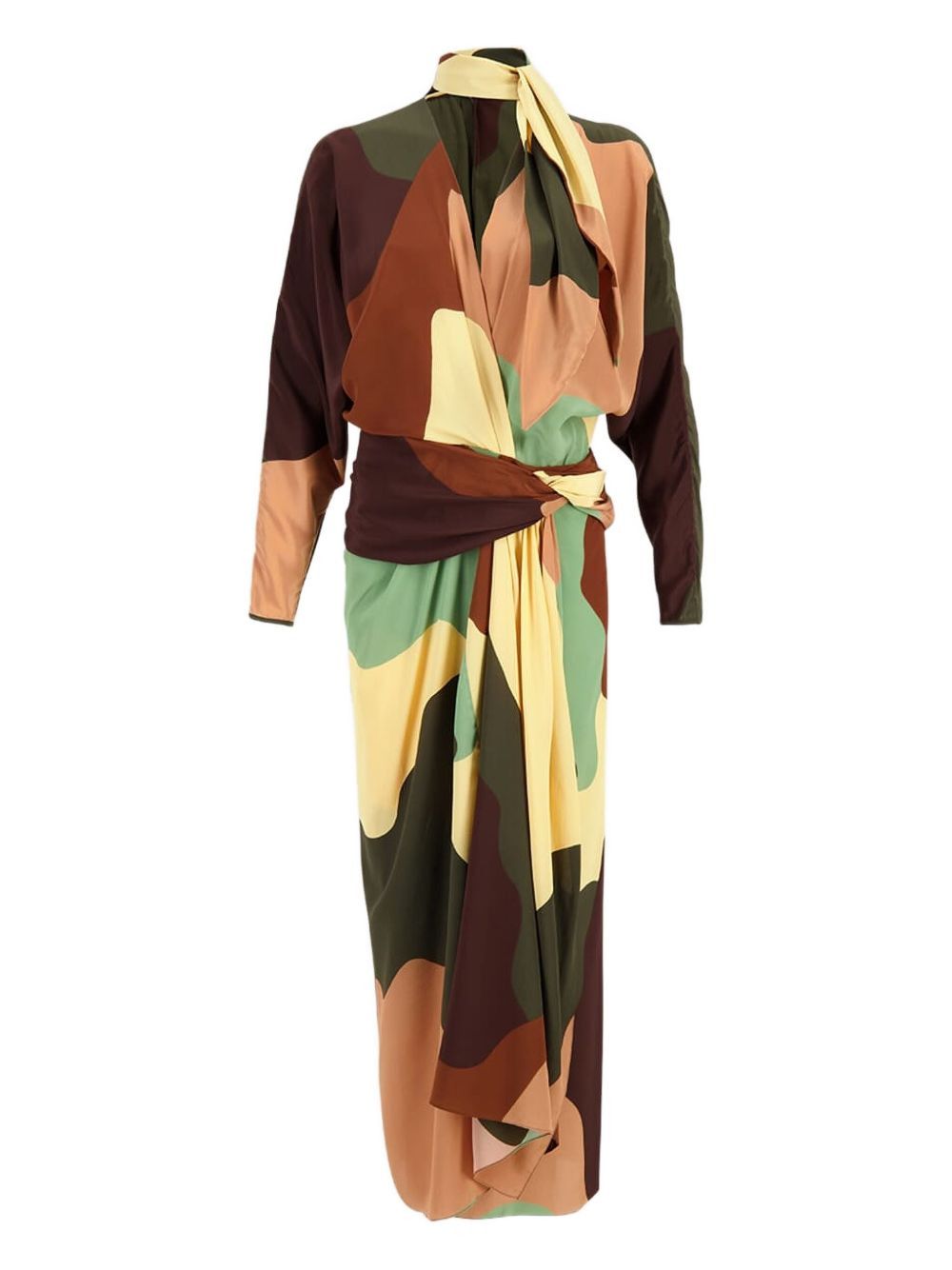 Essence wrap dress Highlights - Multicolor - Abstract print - V-neck - Long sleeves - Self-tie belt Imported Composition Silk 100% Washing instructions Dry Clean Only