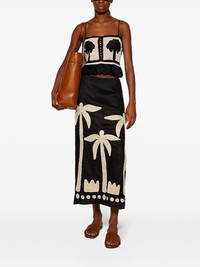 Feliz Augurio skirt Highlights - Black - Linen blend - Maxi skirt - Palm tree print - Rear zip fastening - Straight hem - Long length Imported Composition Linen/Flax 85%, Viscose 15% Washing instructions Dry Clean Only