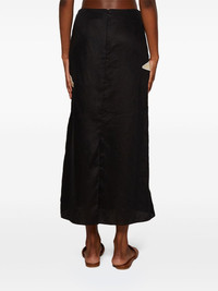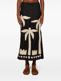 Feliz Aguaro Embroidered Linen-Blend Midi Skirt black