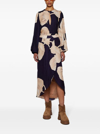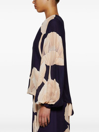 Gotas Florales blouse Highlights - Navy blue/light beige - Silk - Floral print - Hook and eye fastening - Round neck - Long sleeves - Straight hem Imported Composition Silk 100%
