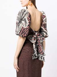 graphic-print puff-sleeve blouse Highlights - Multicolour - Cotton - All-over graphic print - Square neck - Short puff sleeves - Rear tie fastening - Cropped Imported Composition Cotton 100% SIZE & FIT Model measurements Height 5 ft 11 in(1.8 m) Bust/Chest 28.34 in(72 cm) Hips 35.43 in(90 cm) Waist 23.62 in(60 cm) FittingInformation This piece fits true to size. We recommend you get your regular size Cut for a slim fit Made with a mid-weight non-stretch fabric Washing instructions Dry Clean Only