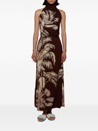 halterneck palm-print maxi dress