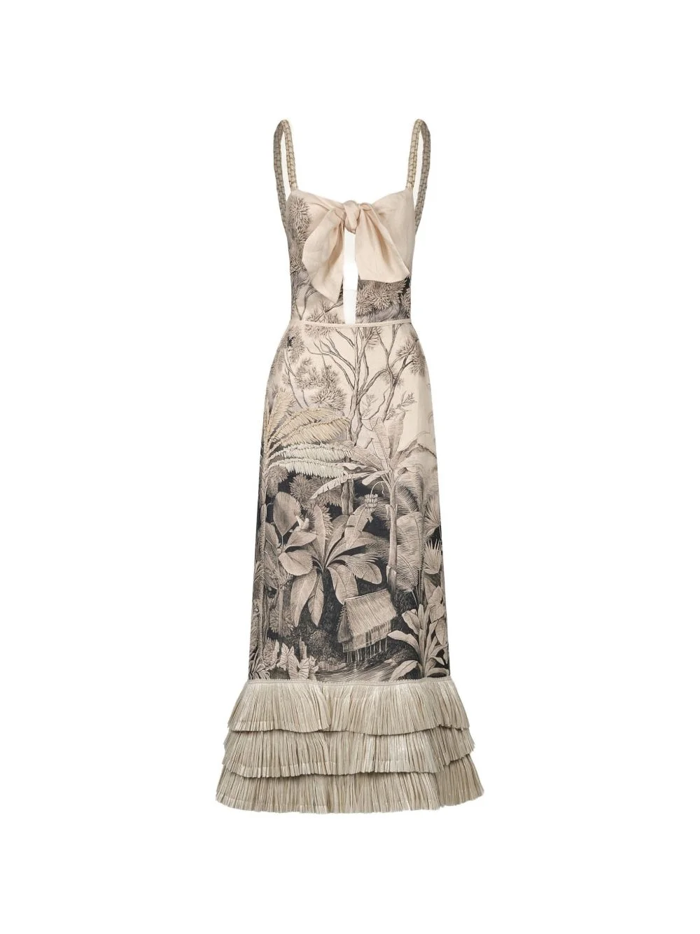 Invictus graphic-pattern midi dress Highlights - Beige - Linen - Graphic pattern - Bow detail - Tiered hem Imported Composition Linen/Flax 100% Washing instructions Read Manufacturer Guidelines