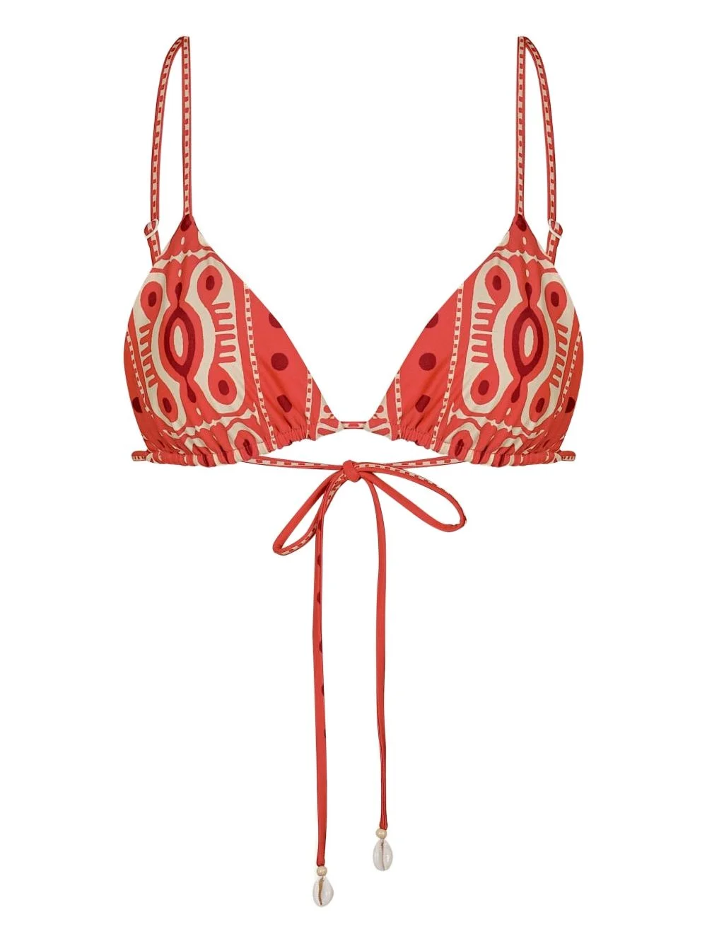 Konibo printed biquini top Highlights - Red - Tie fastening - Shell detail - Adjustable straps - Be mindful to try on swimwear over your own garments. Imported Composition Polyamide 78%, Elastane 22% Washing instructions Read Manufacturer Guidelines