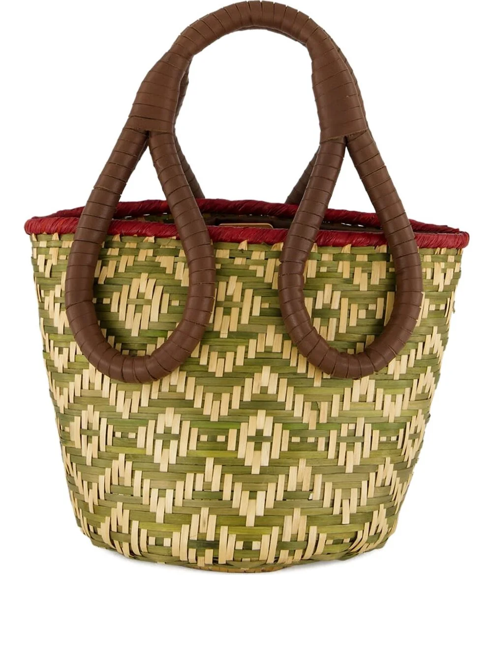 mini Understanding Of The Cosmos woven bucket bag Highlights - Light green - Woven texture - Bucket shape - Open top Imported Composition Natural Fibres 90%, Viscose 10% SIZE & FIT Measurement DEPTH 4.7 in(11.9 cm) HEIGHT 6.3 in(16 cm) WIDTH 9.8 in(24.8 cm)