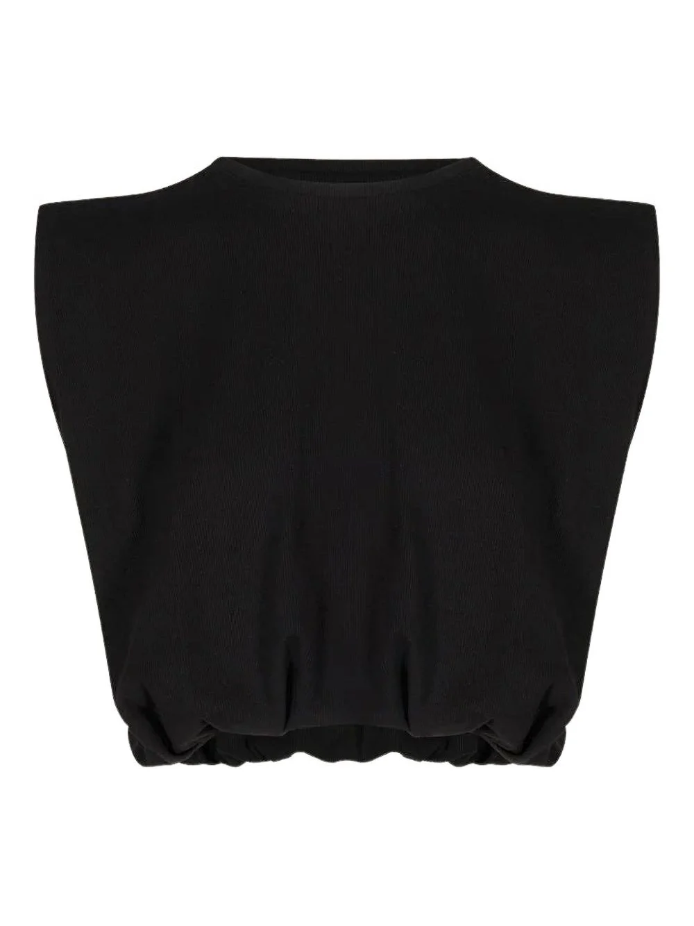 Muraya ribbed top Highlights - Black - Gathered hem - Sleeveless - Shoulder pads Imported Composition Polyester 65%, Cotton 35% Washing instructions Read Manufacturer Guidelines