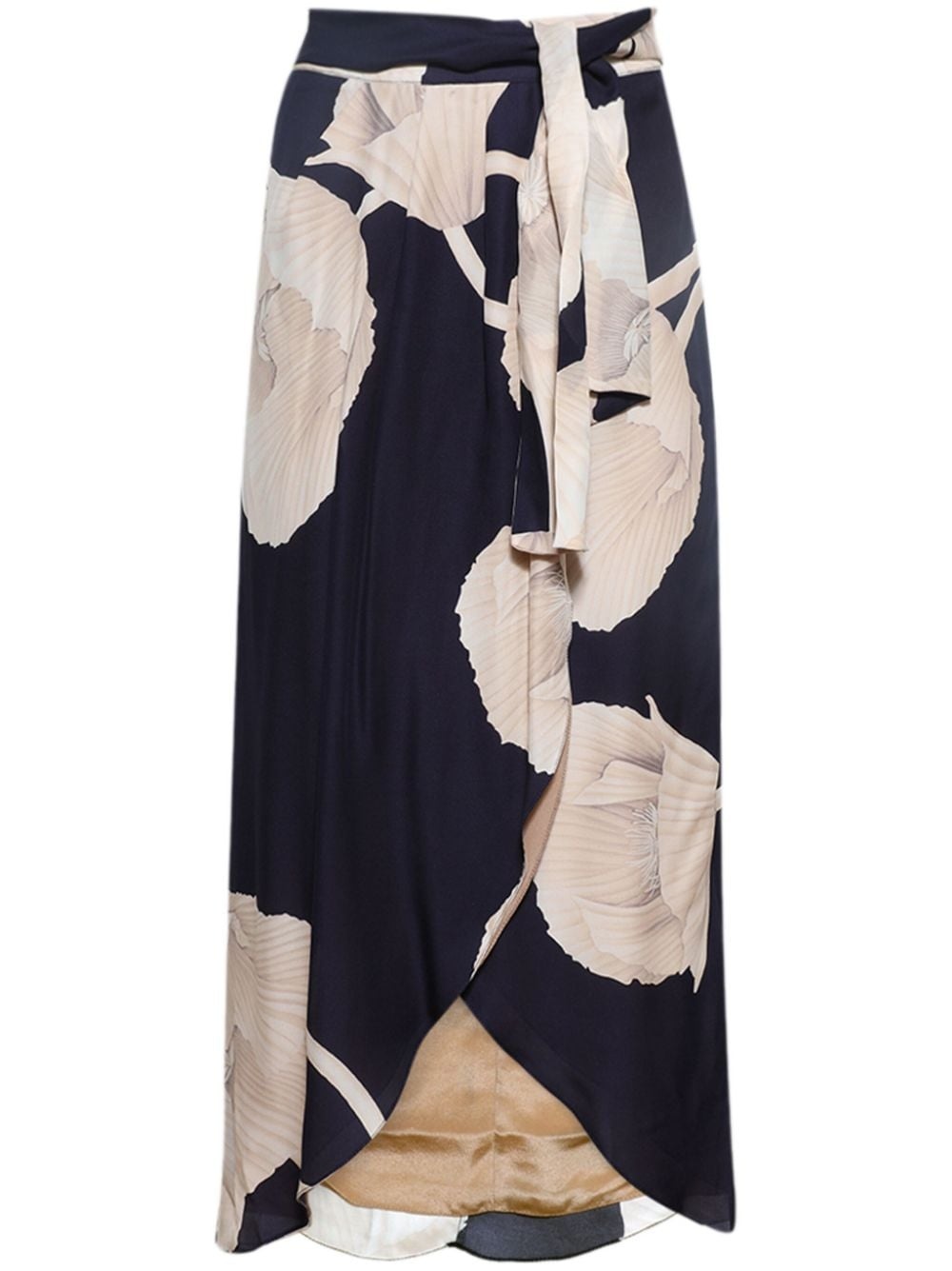 Naturalism wrap skirt Highlights - Navy blue/beige - Silk - Floral print - Wrap design - Tie-fastening straps - Asymmetric hem - Mid-length Imported Composition Silk 100%