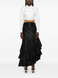 Spirit Of Exploration maxi skirt Highlights - Black - Rear zip fastening - Tiered skirt - Fully ruffled - Asymmetric hem Imported Composition Silk 100% SIZE & FIT Model measurements Height 5 ft 11 in(1.8 m) Bust/Chest 32.67 in(83 cm) Hips 36.22 in(92 cm) Waist 24.4 in(62 cm) FittingInformation This maxi-length skirt is intended to be worn high on the waist Made from a midweight non-stretch fabric