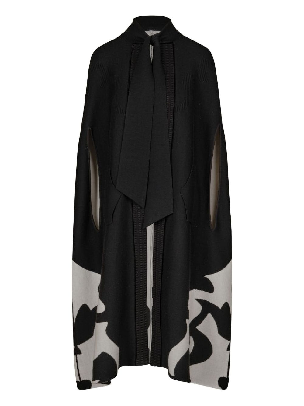 tie-neck cape Highlights - Black - Tie fastening - Graphic print - Open sleeves Imported Composition Mercerised Gassed Cotton 90%, Cashmere 10% Washing instructions Read Manufacturer Guidelines