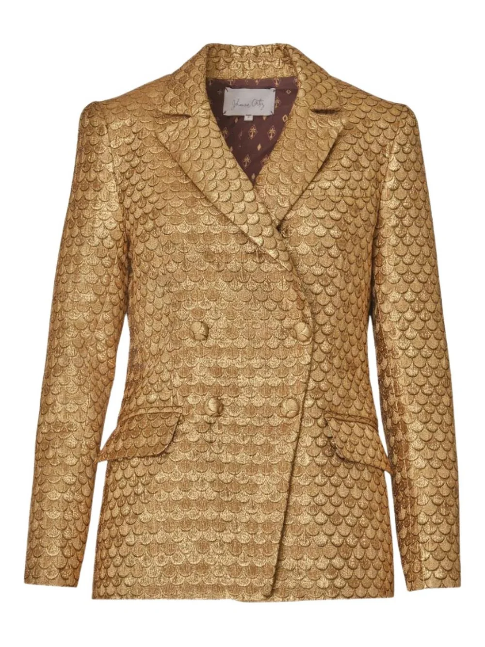 Tranquility jacquard double-breasted blazer Highlights - Gold - Jacquard effect - Double-breasted - Notched lapels - Front flap pockets - Button fastening Imported Composition Acrylic 45%, Cellulose Acetate 41%, Polyester 14% Washing instructions Read Manufacturer Guidelines