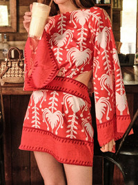 Words of Wisdom dress Highlights - Red - All-over leaf print - Bell sleeves - Cut-out detail - Rear tie fastening - Slash neck - Cotton Imported Composition Cotton 100% Washing instructions Read Manufacturer Guidelines