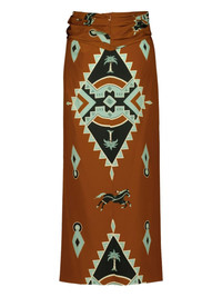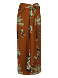 wrap horses palms print midi draped skirt Highlights - Brown - Palm trees and horses print - Geometric pattern - Wrap design - Knotted waist Imported Composition Silk 100% Washing instructions Read Manufacturer Guidelines