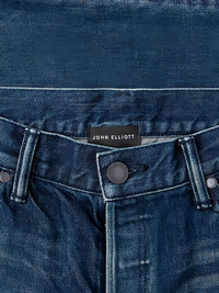 faded effect jeans Blue stretch cotton denim faded effect jeans from John Elliott. Imported Composition Cotton 98%, Spandex/Elastane 2% Washing instructions Dry Clean Only